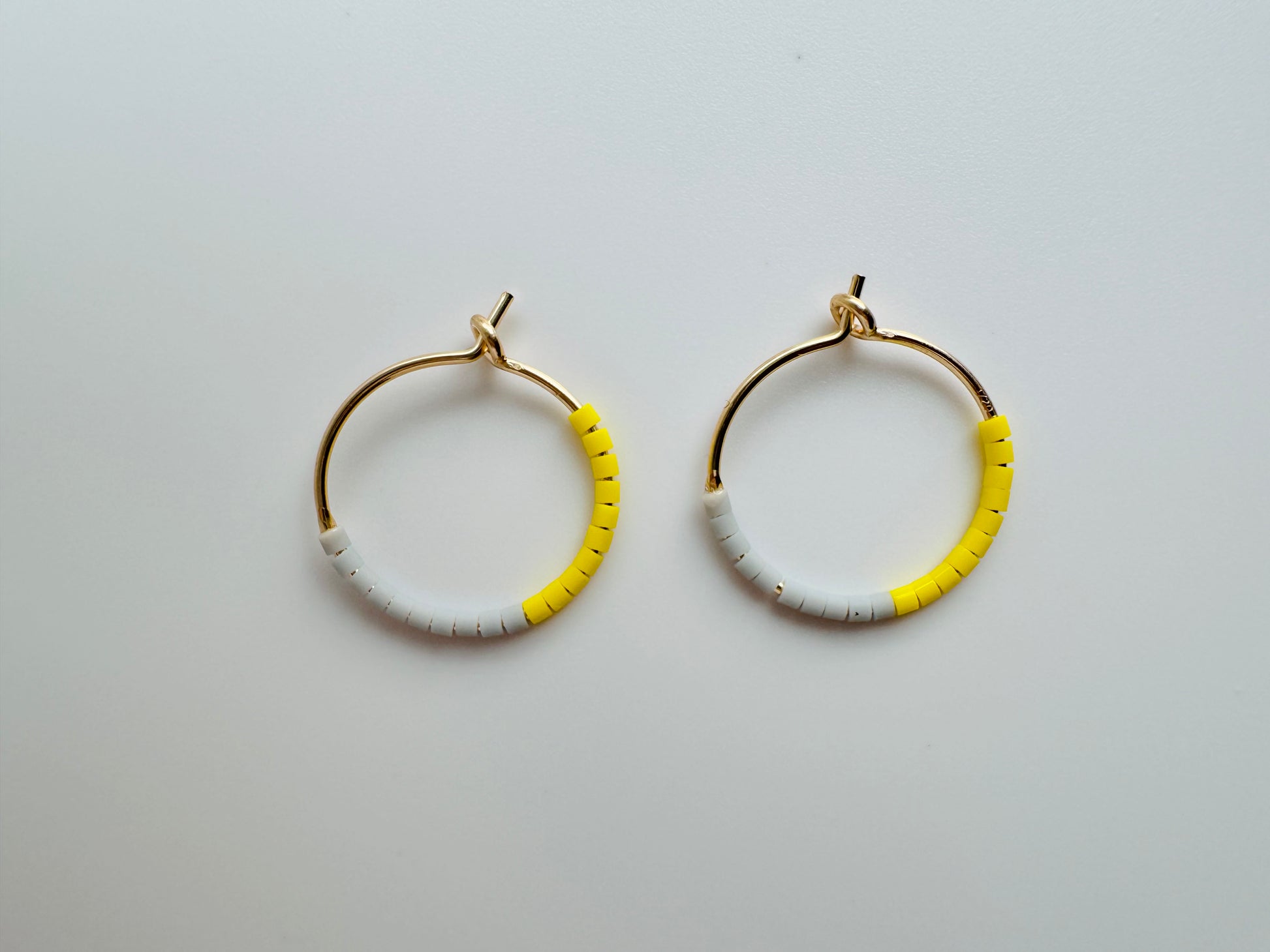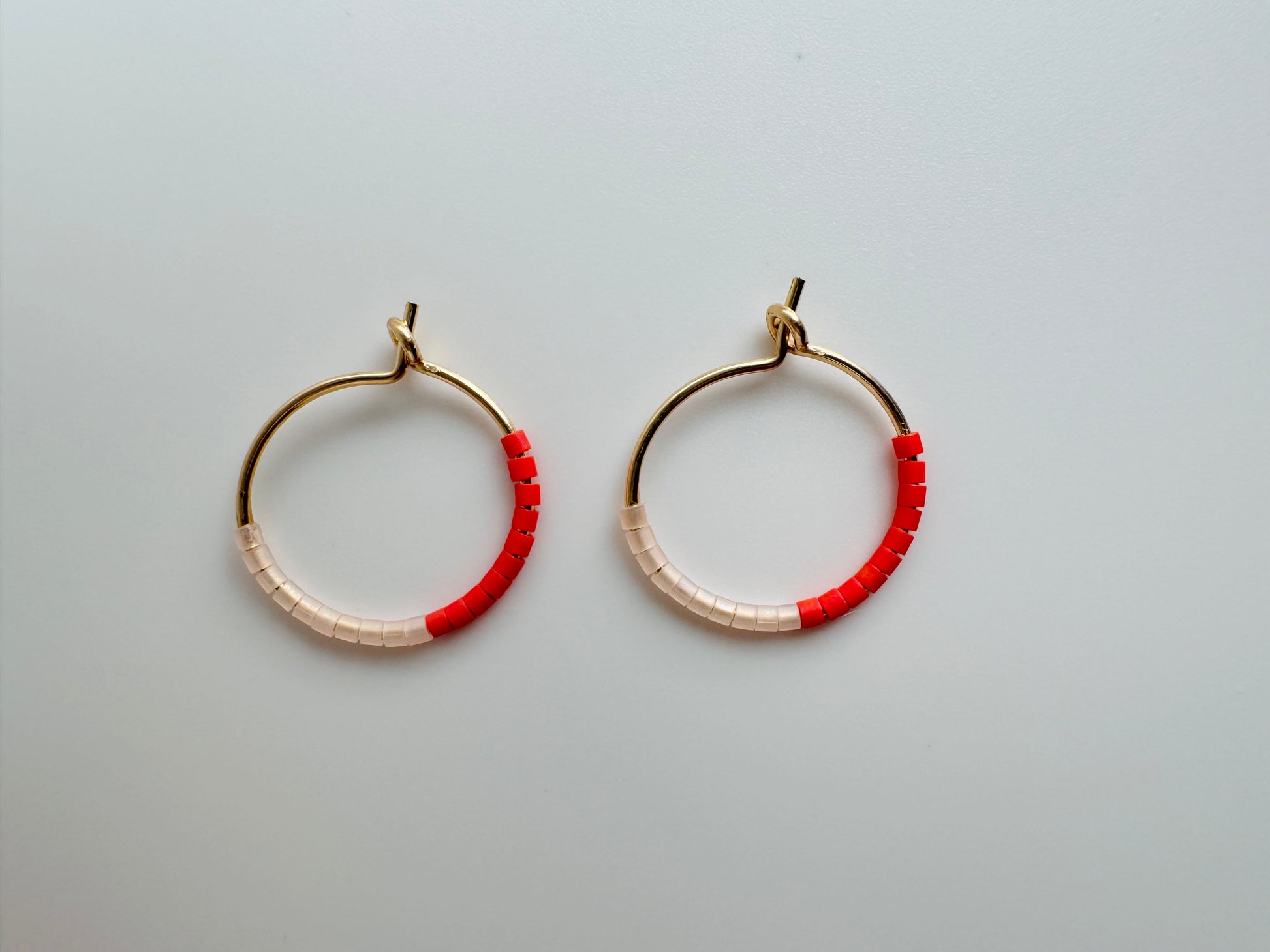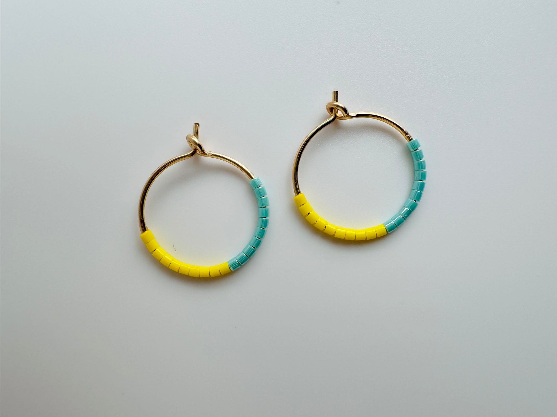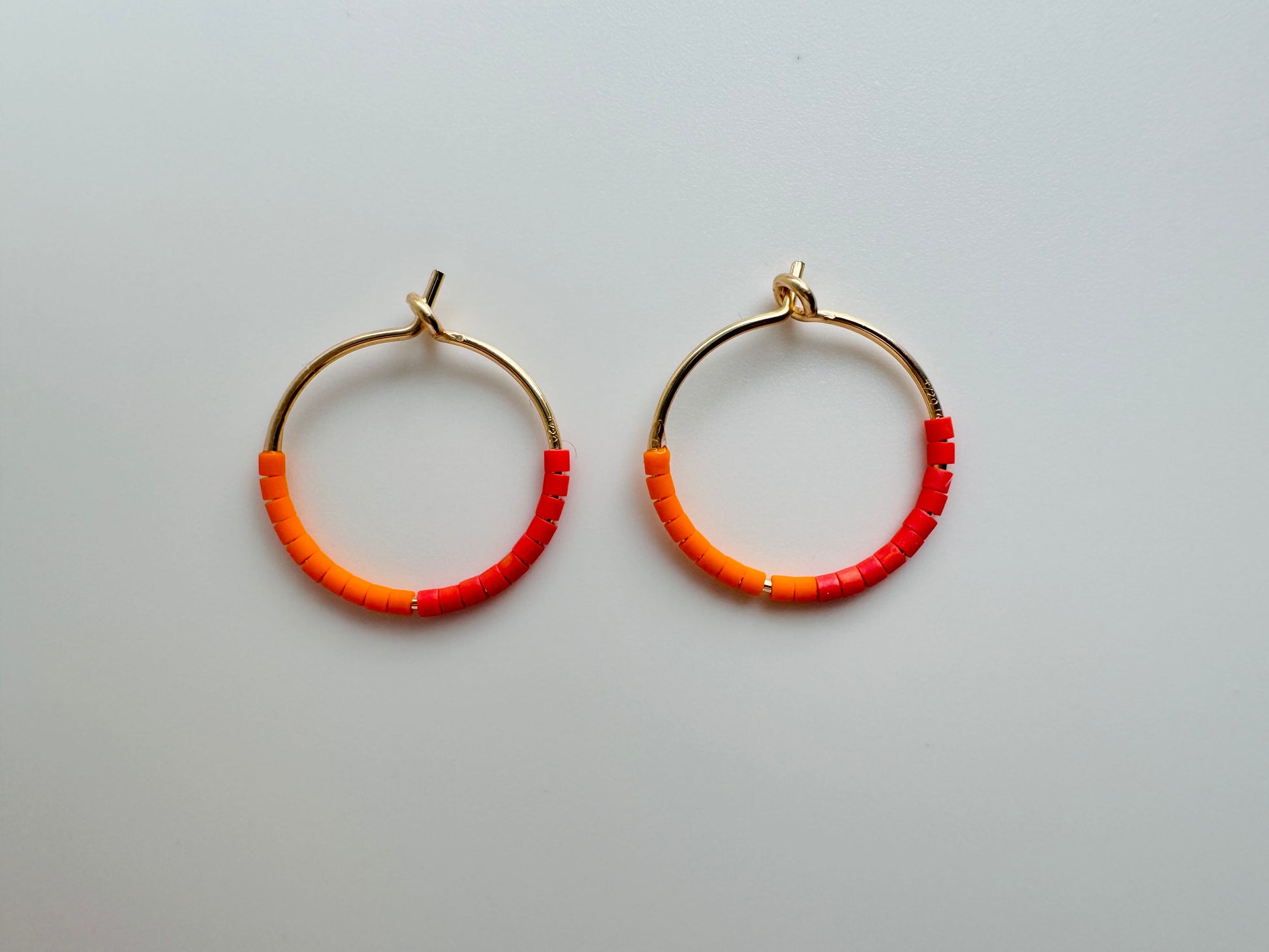 Meet the all new color hoops, each earring is made out of gold-filled hoops and the tiniest of all Japanese seed beads